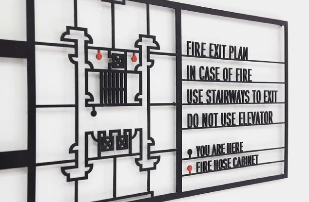 建筑內公共空間的定位性導視標識,包括各教室,辦公室,實驗室等各功能性房間的門牌,樓層平面分布圖等,這些定位性導視標識需要設置在顯眼的位置,方便來訪者查看,可以讓人們標牌設計迅速找到正確的方向,定位性導視標識系統是校園環境信息傳達的直接載體,除了作為功能性的信息指示之外,不同樣式,色彩,材質的導視標識標識也可以為校園的不同功能區域的建筑空間給予具有特色的形象地位。