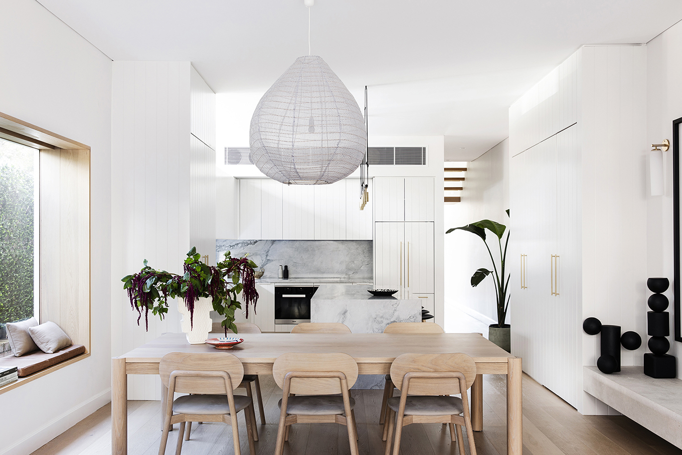 受建筑和沿海地區(qū)的啟發(fā),室內(nèi)設計師Lara Ette繪制了一個調(diào)色板,該調(diào)色板似乎直接取自邦迪海灘本身。蒼白的木材讓人想起白色的沙灘,而質(zhì)感的石頭讓人想起懸崖。通過選擇關鍵的家具(例如客廳中的粉紅色扶手椅),飾面(例如白云石臺面和白色石灰石浮動底座)以及強調(diào)手工元素,平衡了這種輕柔,平靜的物質(zhì)感,她增加了豐富感和活力。 ,例如Articolo和Marz Designs的照明。