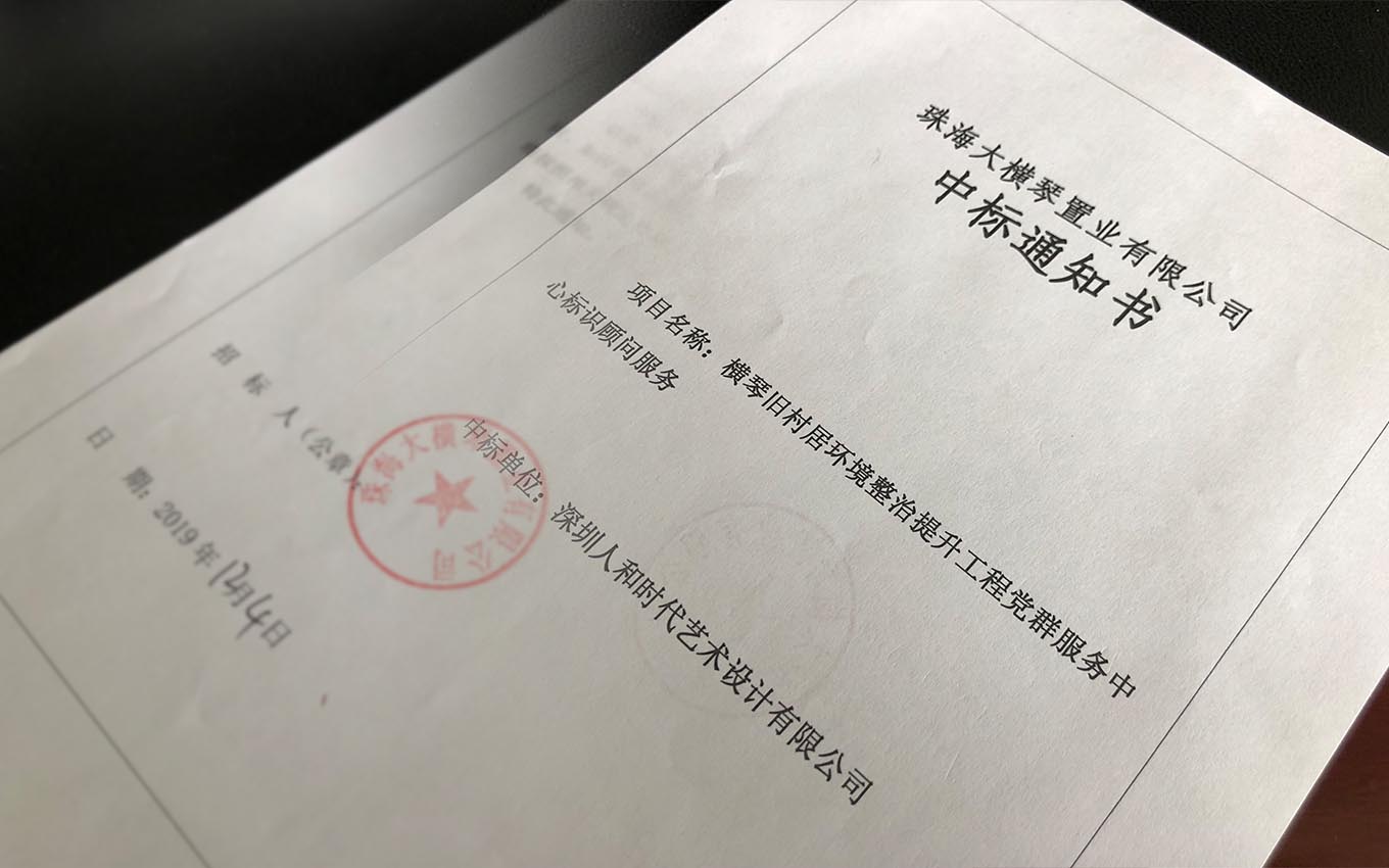 橫琴舊村居環(huán)境整治提升工程及公共服務(wù)用房標(biāo)識顧問服務(wù),人和時代設(shè)計于2019年12月4日為中標(biāo)設(shè)計單位。