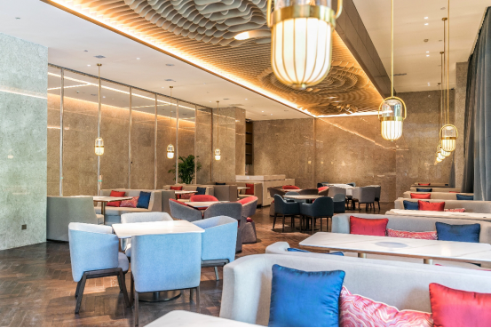 餐廳位于一層酒店大堂旁,使用面積359平米,可同時容納130位客人用餐。餐廳供應中西式自助餐品,同時在午后時光提供精致下午茶。莊普酒店官網