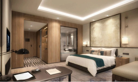 酒店以自然山水為設計靈感,融合了古典文化元素。188間客房,直面山景,擁抱自然,可同時接待300位客人入住。